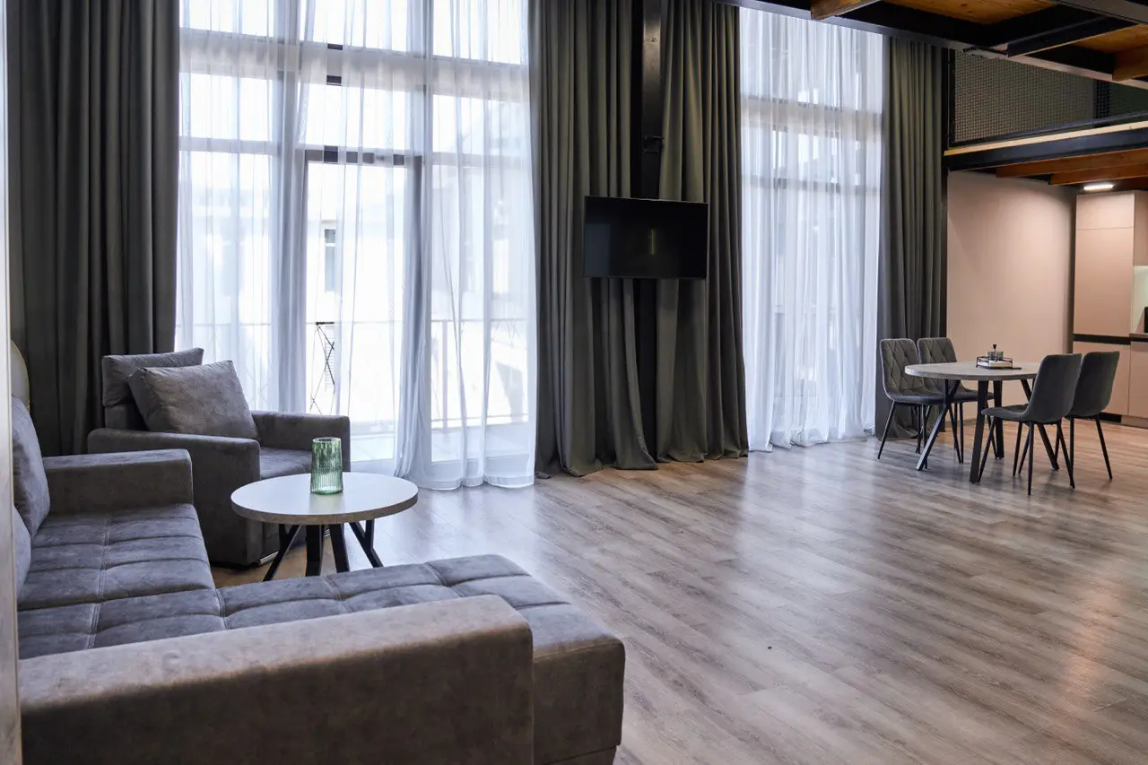 Номер Преміум — це поєднання елегантності, простору та сучасного комфорту. Стильний інтер’єр із натуральних матеріалів, зручна зона відпочинку та робоче місце створюють ідеальні умови як для ділових поїздок, так і для тривалого проживання. Продумане освітлення, панорамні вікна та бездоганний сервіс забезпечують атмосферу спокою й гармонії.